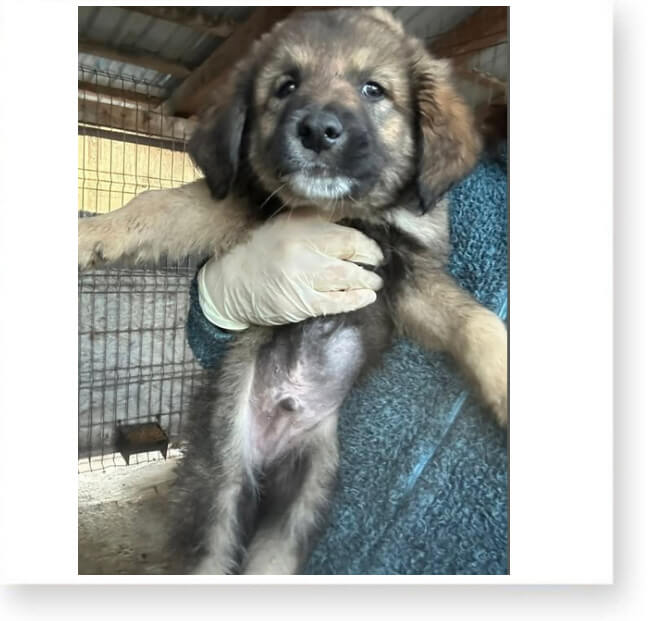 Der kleine Enno wurde mit seinen Geschwistern auf der Straße von den Hundefängern eingefangen.