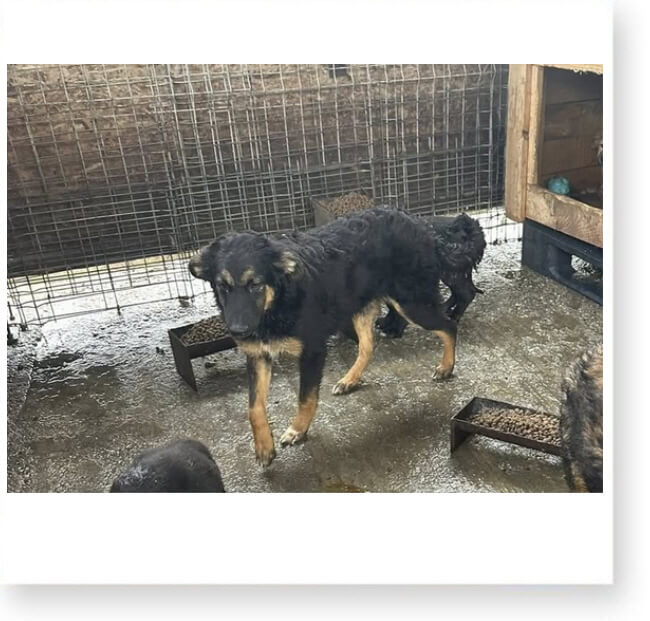 Die Hunde dürfen nie ihre Zwinger verlassen, es gibt keinerlei Beschäftigungsmöglichkeiten. Der Boden ist permanent feucht vom Urin und dem Regenwasser, das durch das Dach rinnt. Es ist permanent laut, die wenigen Hütten, die es gibt, sind überfüllt mit Hunden.