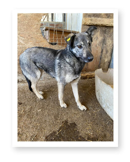 Maro ist ein freundlicher Rüde, etwas zurückhaltend. Mit Hunden ist er sozial und lieb.