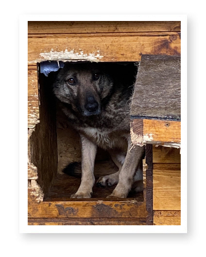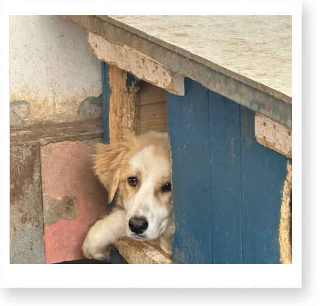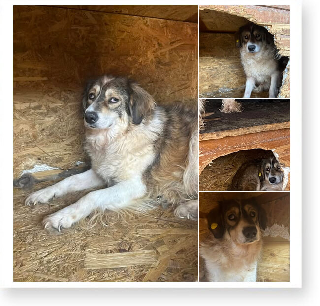 Er traut sich kaum dort raus, das shelter macht ihm Angst. Er ist einer von den sensibleren Hunden, der Krach, das Bellen den ganzen Tag, das macht ihm zu schaffen!!!