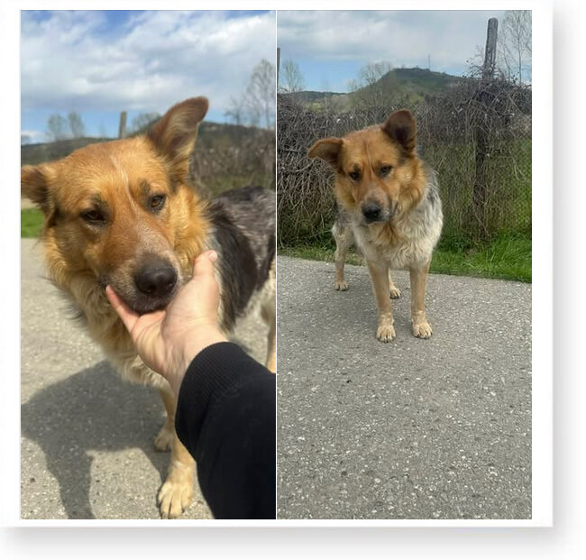 Er ist ein lieber Bub und mit allen Hunden sehr freundlich. Nach den Grausamkeiten der Menschen hat er nun Angst vor uns!!!