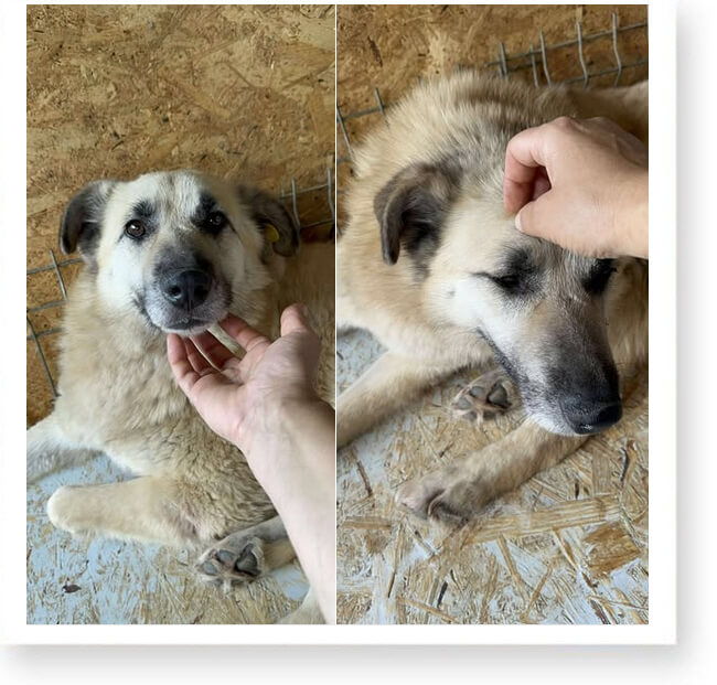 Was genau Panda angetan wurde, weiß leider niemand, aber es muss schlimm gewesen sein. Er ist nicht von alleine so geworden. Panda ist lieb und freundlich mit allen Hunden, bei Menschen ist er schüchtern. Das wird seine Gründe haben 😞