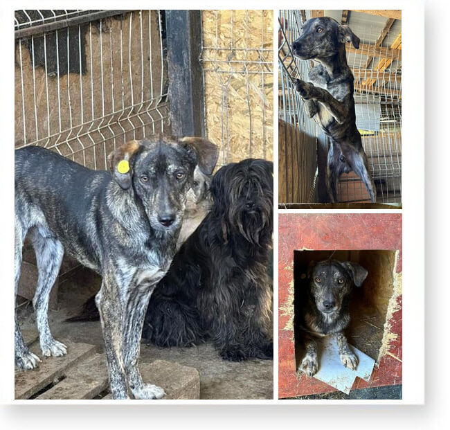 Julian ist mit allen Hunden dort sehr sozial und freundlich. Bei Menschen ist er vorsichtig geworden. Er kennt ja auch nur die schlechten Menschen 😞